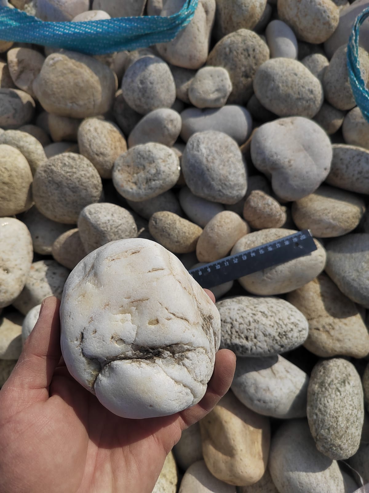Галька горная речная окатанная (серо-белая, "страусиные яйца")