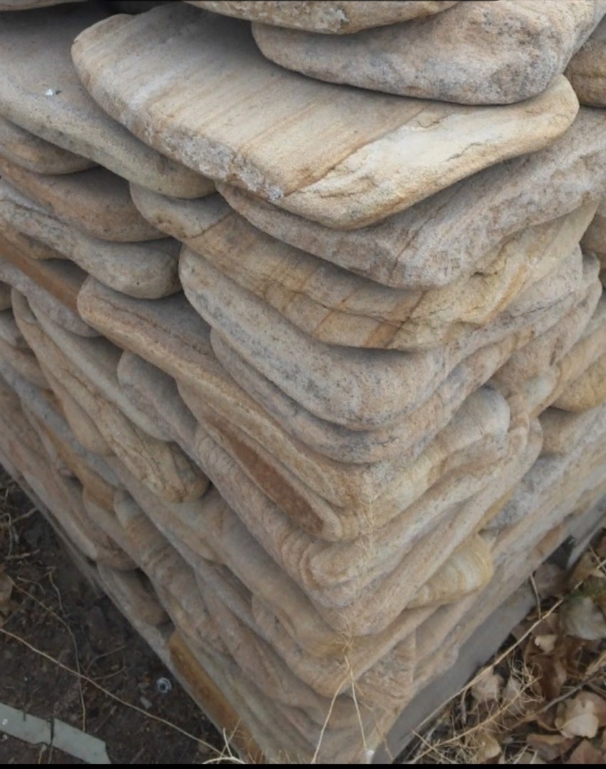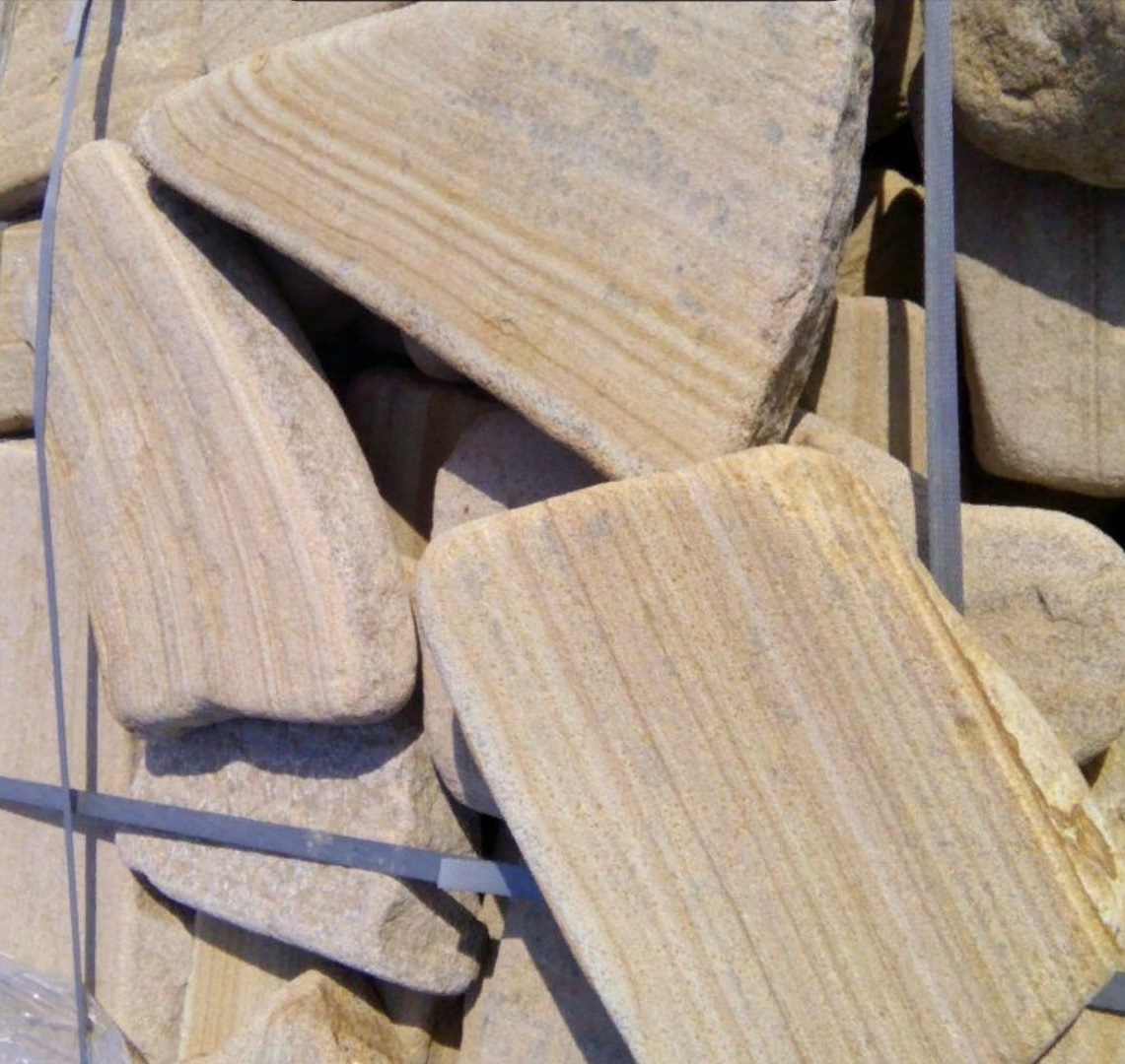 Песчаник пластушка галтованный желтый с рисунком