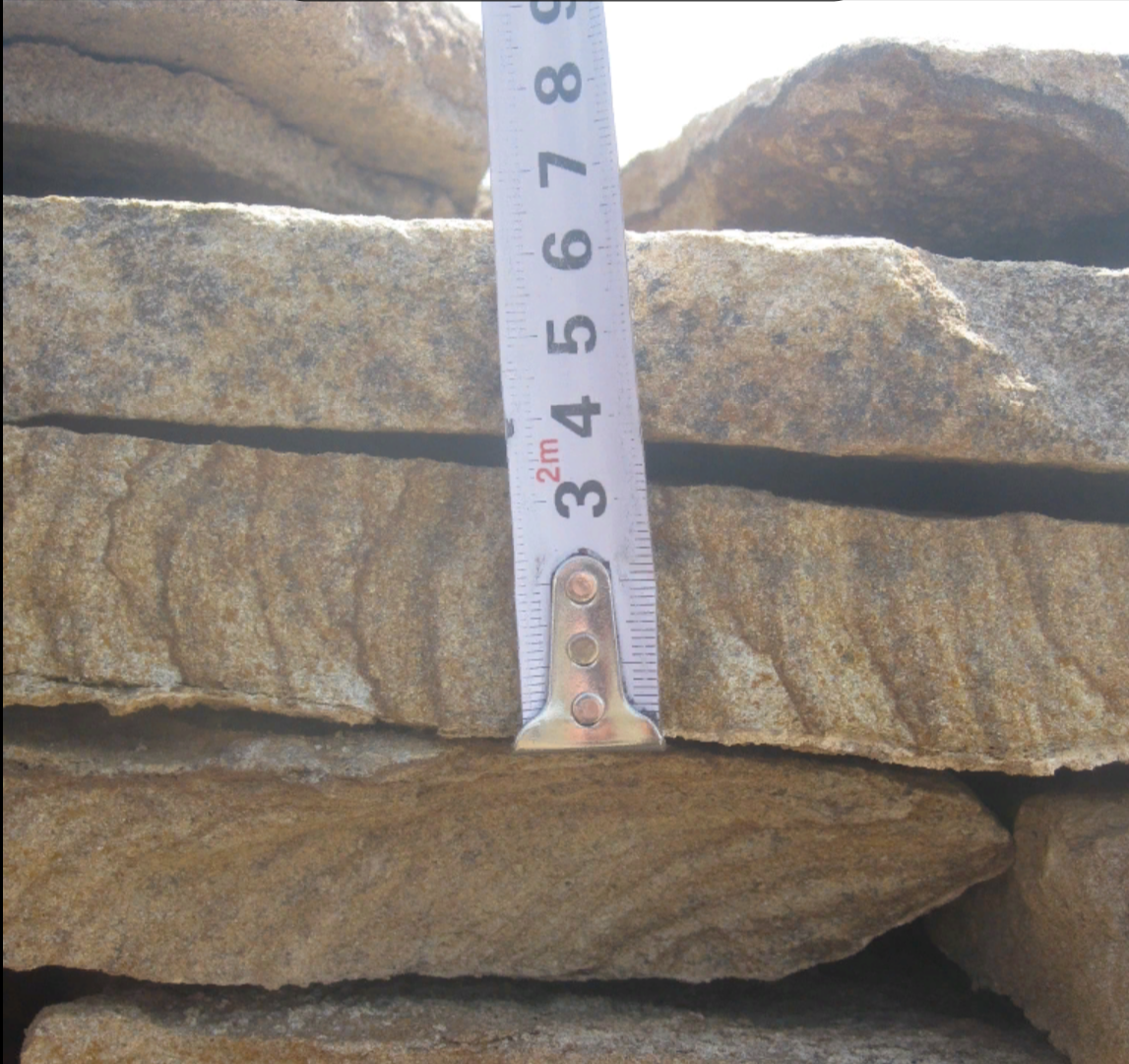 • Kamenclub.ru: Песчаник пластушка желтый с рисунком (3 см)  купить в Кемерово песчаник желтый с рисунком, рыжий, желтый песчаник пластушка ландшафтная рваная 8 500 руб/м3   фото КАМЕНЬ КЛУБ