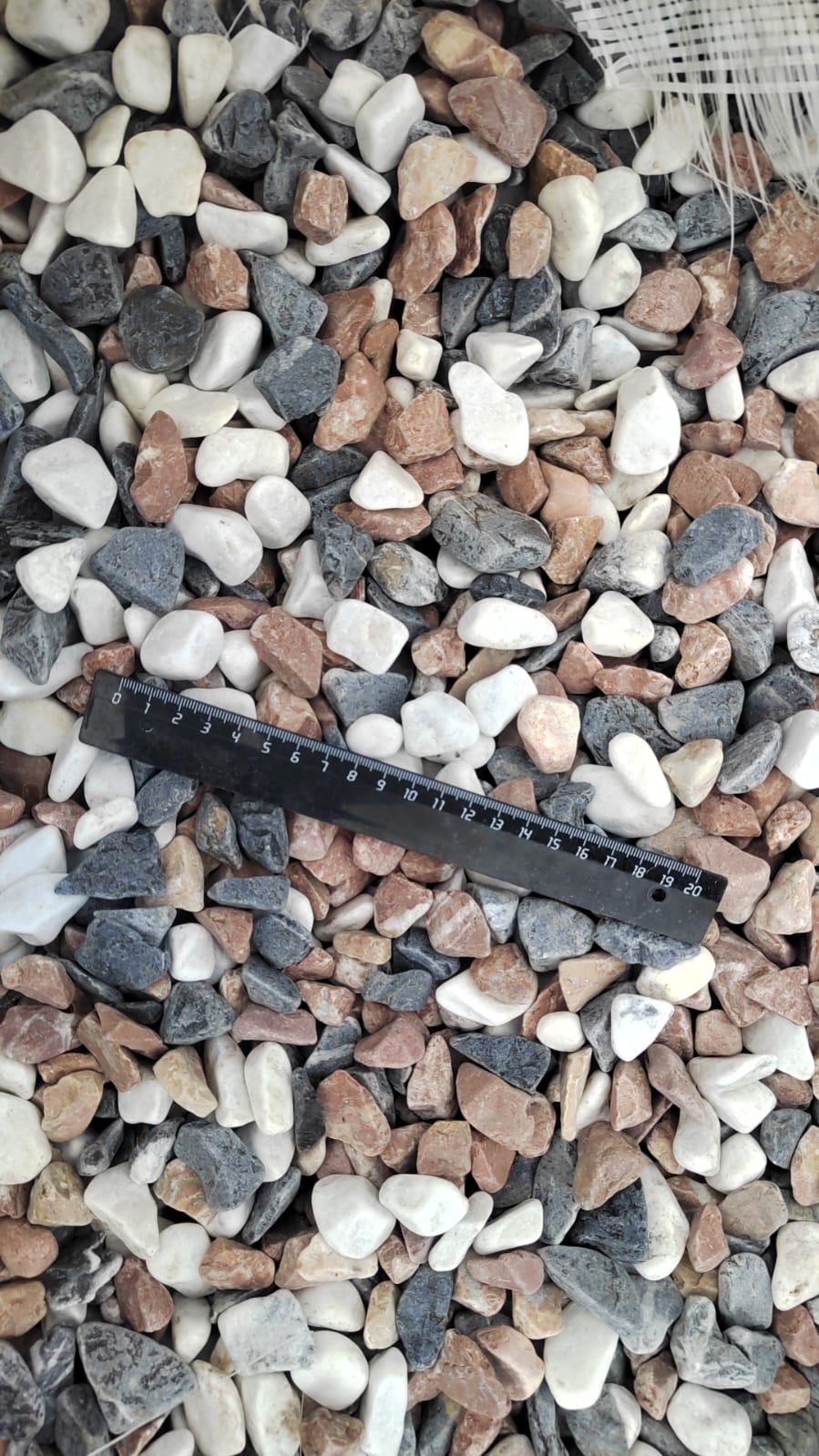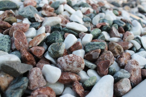 Мраморная крошка (щебень галтованный микс:белый-зеленый-розовый) фр.20-40 мм.