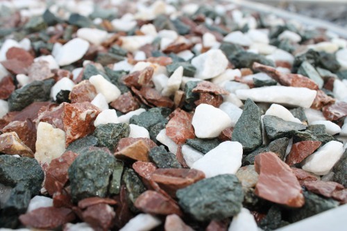 Kamenclub.ru: мраморная крошка (щебень крошка микс: белый-зеленый-розовый) фр. 10-20 мм. купить в Кемерово - заказать природный камень по низким ценам оптом с доставкой от производителя - kamenclub.ru