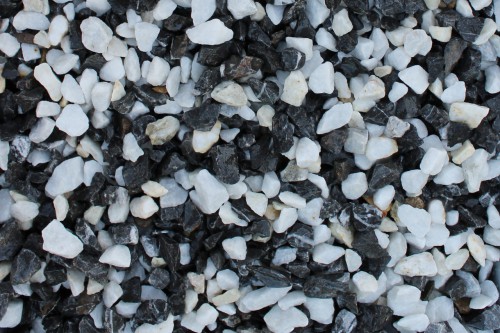 Kamenclub.ru: мраморная крошка (щебень крошка микс : черный-белый) фр. 10-20 мм. купить в Кемерово - заказать природный камень по низким ценам оптом с доставкой от производителя - kamenclub.ru