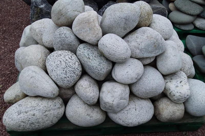 Kamenclub.ru: бело-серый валунчик фр.100-300 мм. купить в Кемерово - заказать природный камень по низким ценам оптом с доставкой от производителя - kamenclub.ru